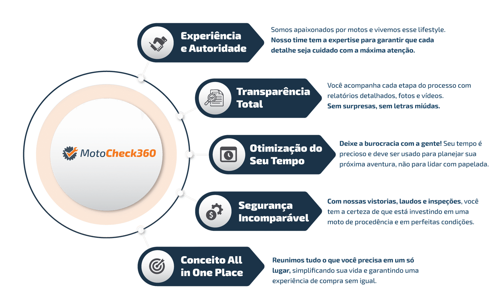 Com o MotoCheck 360, a distância deixa de ser um problema. É a sua garantia de uma compra segura, transparente e sem preocupações.
